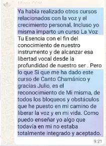 Estoy completamente seguro de que, si te implicas y recorres este viaje, descubrirás que tu voz tiene un poder de sanación y expresión que ni imaginabas.